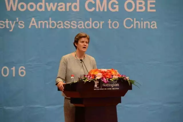 英国驻华大使吴百纳女士(Barbara Woodward)访问宁波诺丁汉大学,为学校的新报告厅--戴维·赫伯特·劳伦斯报告厅命名并揭牌,并做题为“中英关系的黄金时期”的演讲