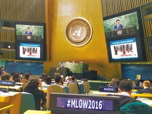 国际传播学毕业生许潇峰作为学术影响力全球青年论坛的中国代表登上联合国主席台用西班牙语演讲