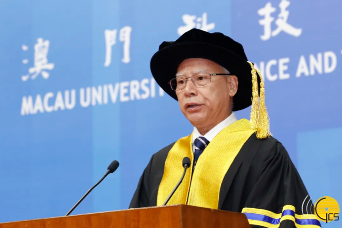 行政長官岑浩輝在澳門科技大學2025年度畢業典禮上致辭。