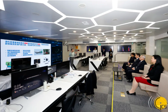 行政長官岑浩輝視察澳門科技大學的澳科衛星科學與應用數據中心。